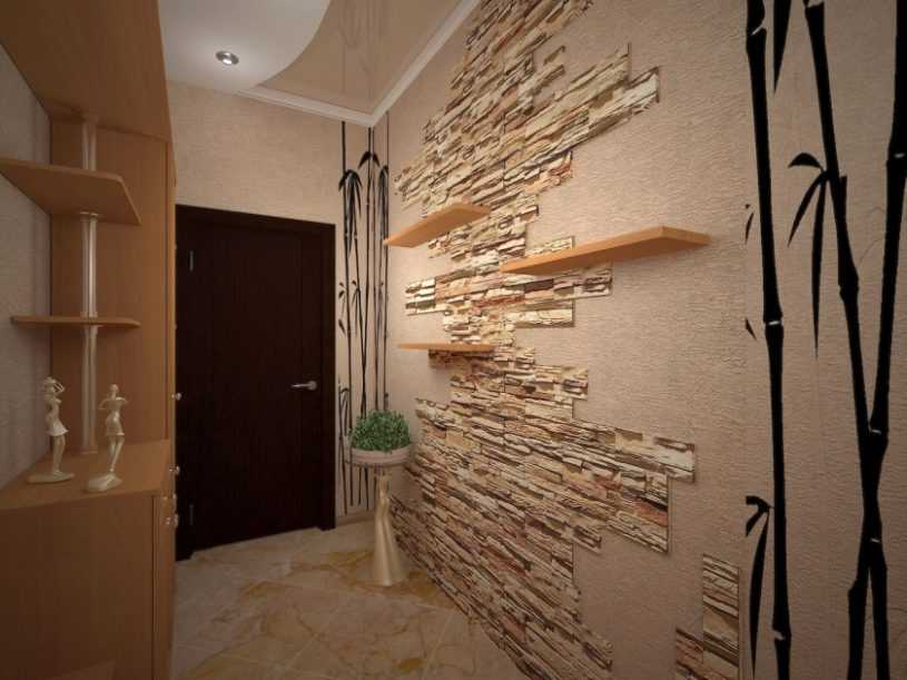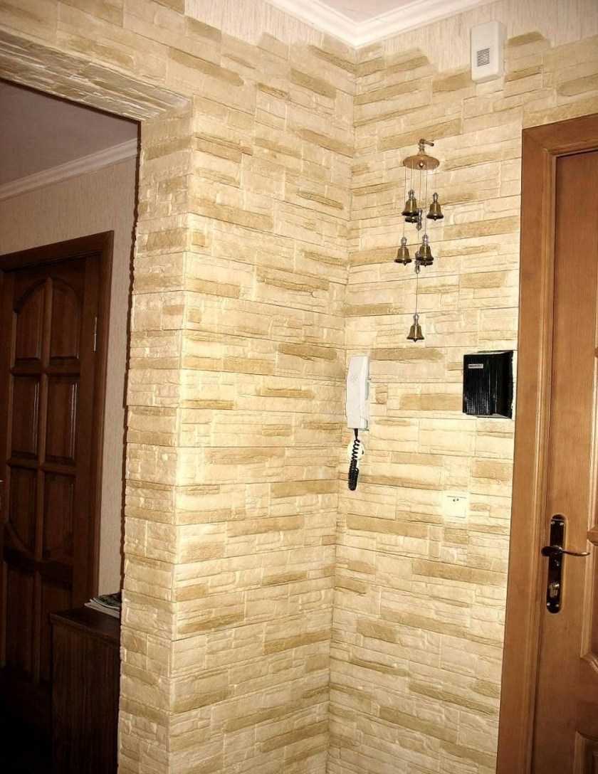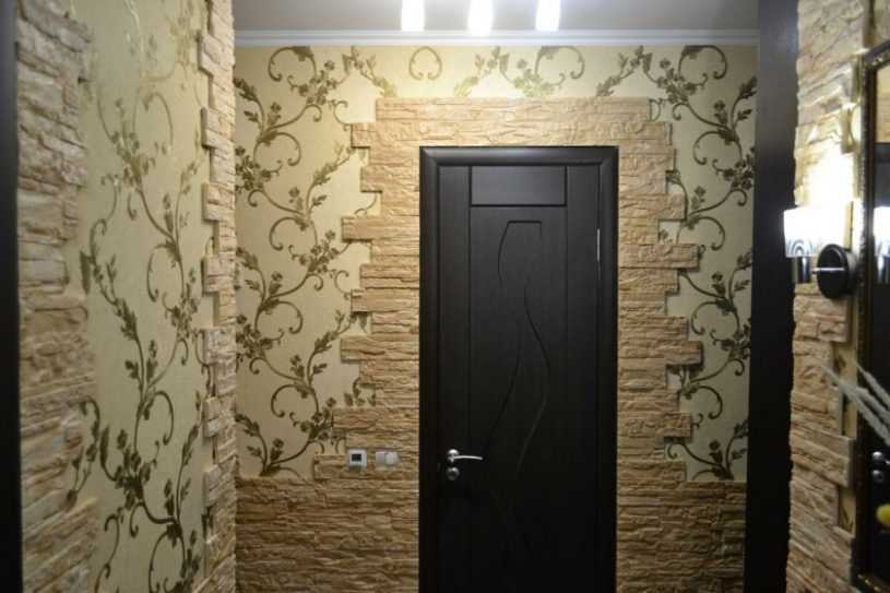 Отделка прихожей декоративным камнем и обоями: фото дизайнерских решений