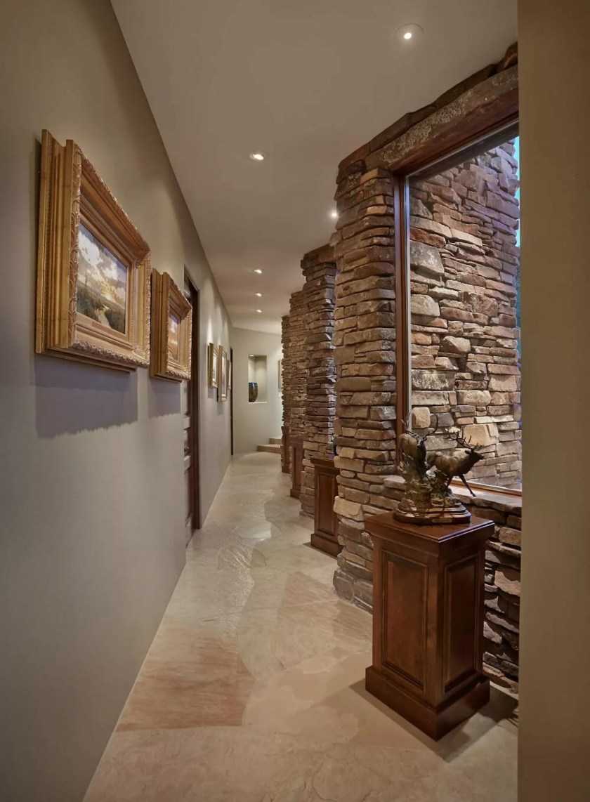Выбирая камень для коридора, сначала определяются с цветом, формой, фактурой. Используя светлые оттенки, можно визуально придать помещению дополнительный объем, темные – сделать его ярче, насыщеннее.