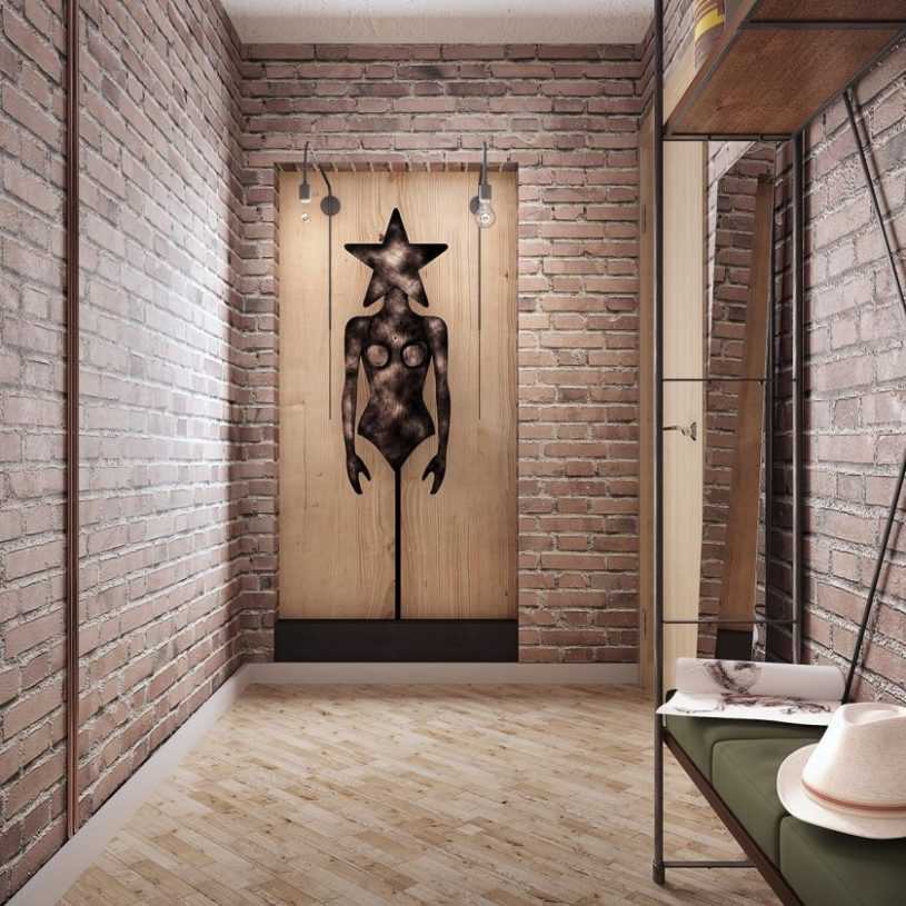 Кирпич является непременным атрибутом стиля Лофт. В прихожей, оформленной в таком стиле, замечательно смотрятся кирпичные стены, которые могут сочетаться с деревянными элементами и изделиями из кожи.
