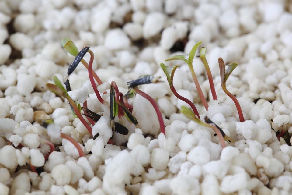 - Для проращивания семян и укоренения черенков. Замена воды на перлит при водном укоренении черенков позволяет избежать их загнивания. При выращивании рассады овощных и цветочных культур в перлите, реже наблюдаются грибковые заболевания (чёрная ножка и другие). Однако необходимо помнить, что перлит не содержит питательных веществ и для того, чтобы получить здоровую рассаду, необходимо поливать ростки водным раствором удобрений и применять бактериальные препараты для создания особой микрофлоры. При этом следует использовать комплексные удобрения, а не кальциевые препараты, так как последние приведут к смещению нейтральной pH-реакции перлита в щелочную сторону.