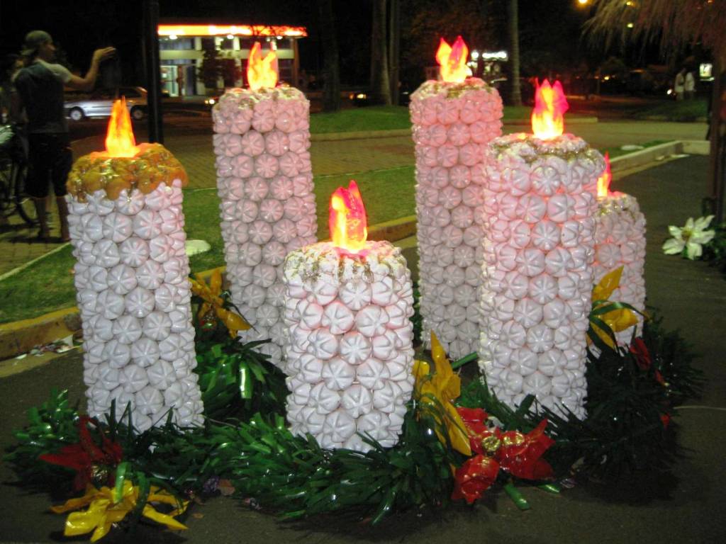 Небольшую пятнистость в пределах допустимости мерцания светотеней, дают сферы, выполненные из пластиковых бутылок или одноразовой посуды. Более равномерное освещение предоставляет абажур, выполненный из нарезанных пластиковых листочков даже различных расцветок.