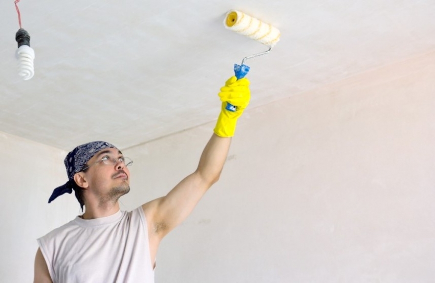Для лучшего сцепления плитки с поверхностью, потолок следует предварительно прогрунтовать