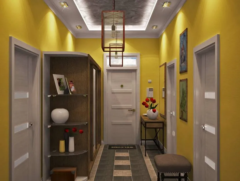Чаще всего коридоры красят в нейтральные оттенки, которые идеально гармонируют с любым интерьером. Если есть желание, скучную атмосферу можно разбавить яркими аксессуарами и предметами быта.