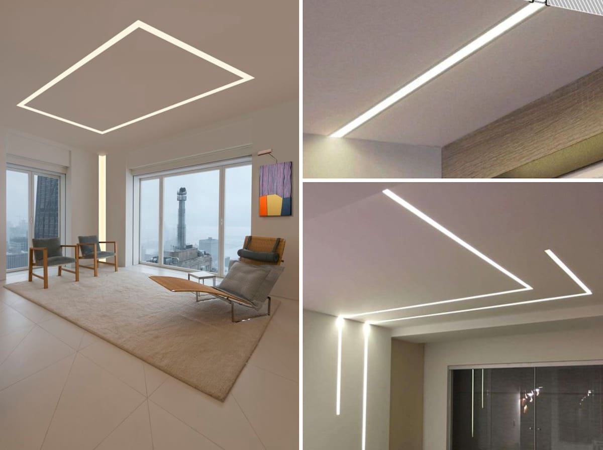 Потолочные из гипсокартона — немного устаревший, но все еще популярный вариант, для акцентирования потолка с помощью различных перепадом форм и ярусов с помощью монтажа коробов из гипсокартона.