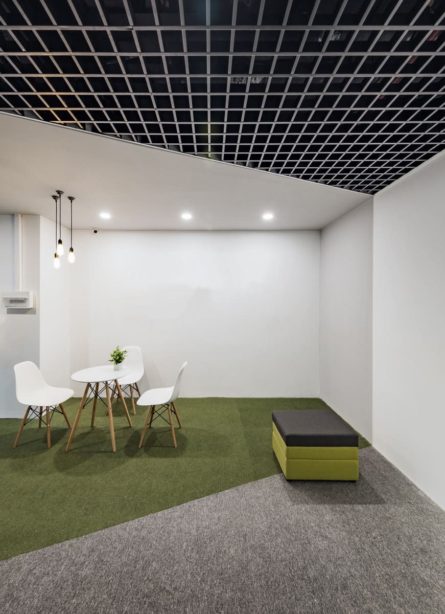 Такой потолок называется «Грильято» и позволяет воплощать в жизнь смелые и нестандартные решения дизайнеров. Ячейки самые разные, в том числе многоуровневые. Такие потолки служат долго, и к ним подходит практически любой вид освещения.