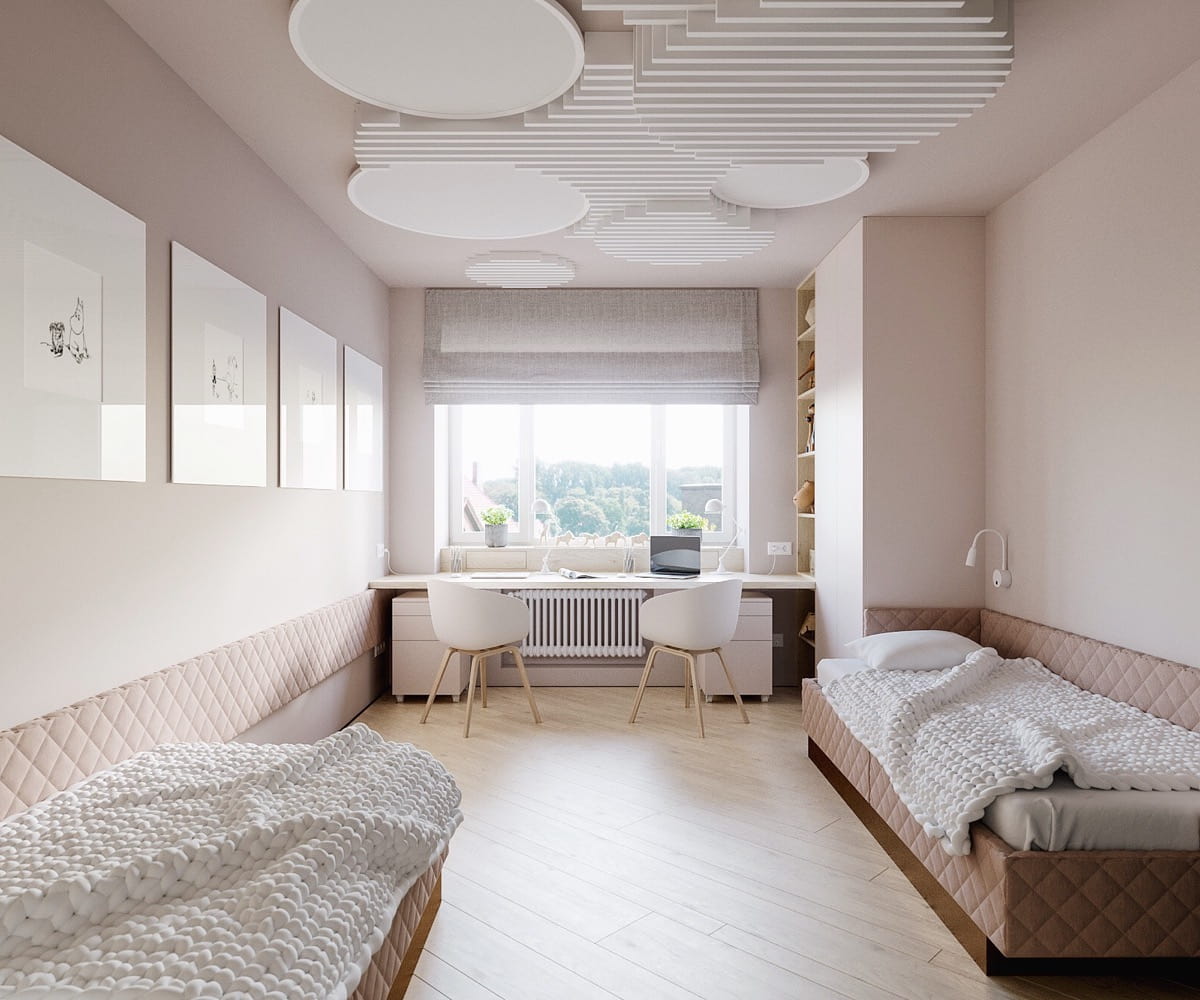 Потолок служит фоном, он не привлекает к себе внимания, а оттеняет собой другие яркие предметы;