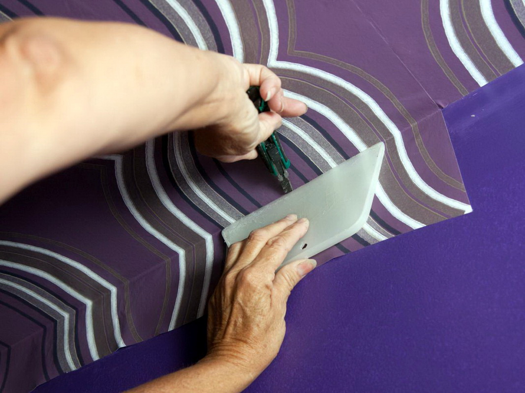 Однако, локальное нанесение возможно только в местах, где стены не загрязняются постоянно. На кухне или в столовой, например, придется вырезать загрязненный участок и наклеивать новый. Для этого вам понадобится нож или обыкновенный шпатель.