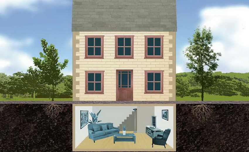 - благодаря дополнительному подземному помещению можно будет сэкономить на утеплении пола первого этажа, эту роль будет выполнять нижний этаж.