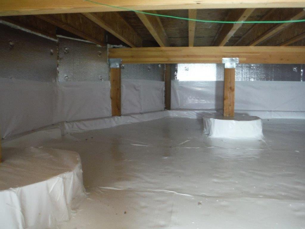 - при усилении горизонтальной плоскости, она засыпается щебёнкой и цементируется, изоляция заходит на стены до 300 мм.