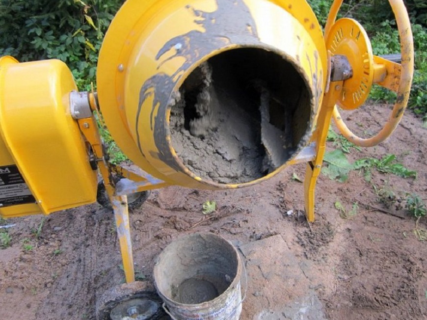 Первый замес бетона в бетономешалке не делайте «на сухую», налейте во вращающуюся емкость 0,5 ведра воды и учтите этот объем при дальнейшем измерении пропорций. Таким способом удастся избежать прилипания готовой смеси к стенкам емкости.