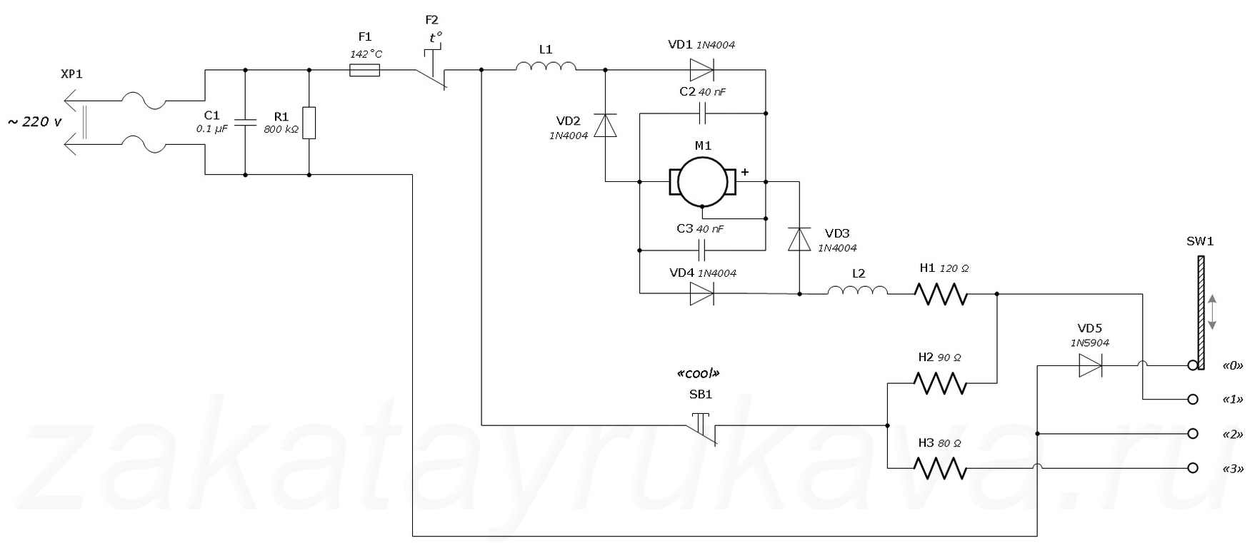 Электрическая схема строительного фена