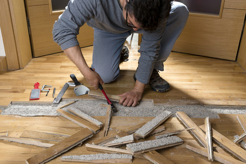 Демонтаж старого пола является несложной, но трудоемкой процедурой, которая зависит от габаритов помещения и сложности покрытия. Соблюдая некоторые рекомендации, работы можно выполнить самостоятельно, что позволит существенно сэкономить финансовые средства во время проведения ремонта.