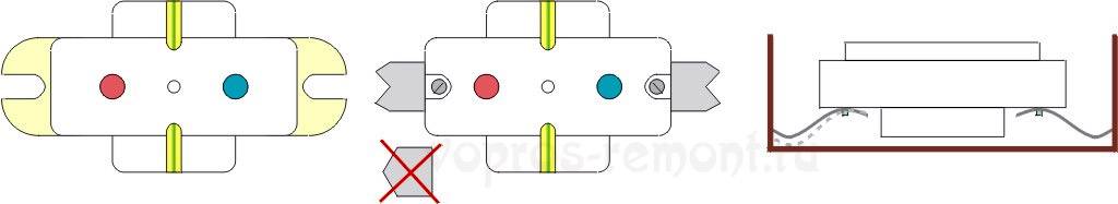 - По обеим сторонам корпуса имеются отверстия для провода. В случае с одноклавишным устройством есть лишь один провод, поэтому разобраться будет легче.