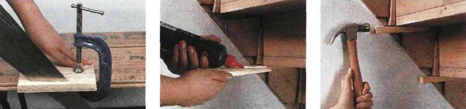 - в несущих балках делаются пазы для ступеней либо можно использовать деревянные бруски, что является более простым вариантом;