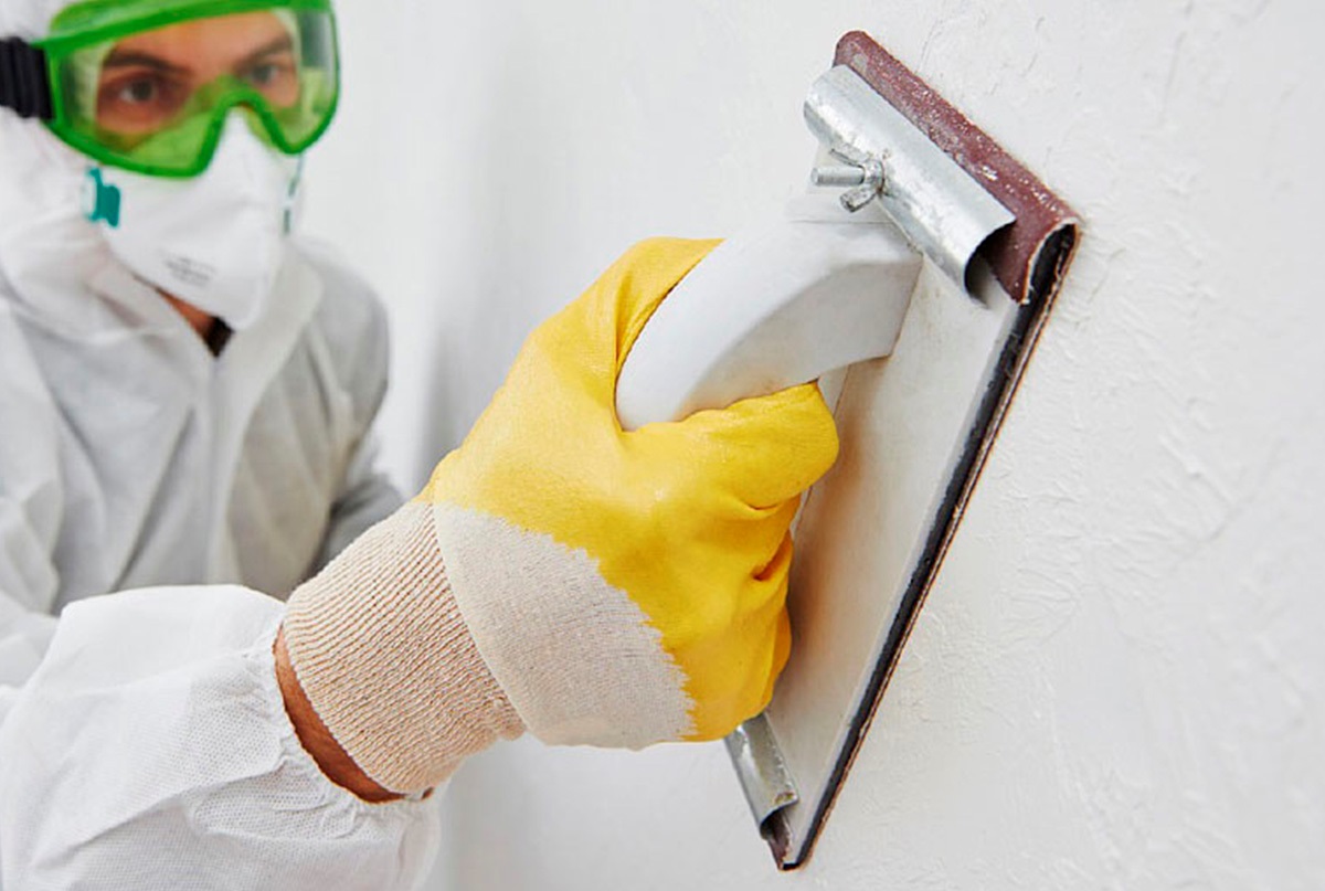 Хорошо выровненная стена должна полностью высохнуть. На это может уйти 12 часов и более. Затем приступают к шлифованию. Перед тем, как приступить к этой процедуре, нужно надеть головной убор, очки, респиратор и перчатки. Далее шлифовальным инструментом нужно довести стены до гладкого состояния. В процессе будет образовываться много пыли.