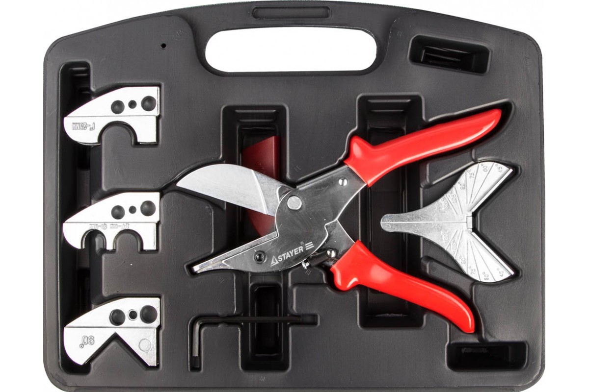Для пластика и металлопластика – труборезы этого типа чаще всего представлены ножницами, которые приспособлены для раскроя округлых коммуникаций из ПВХ. Подавляющее большинство таких труборезов оснащается храповым механизмом. Обычно это ручные модели с достаточно простой конструкцией.