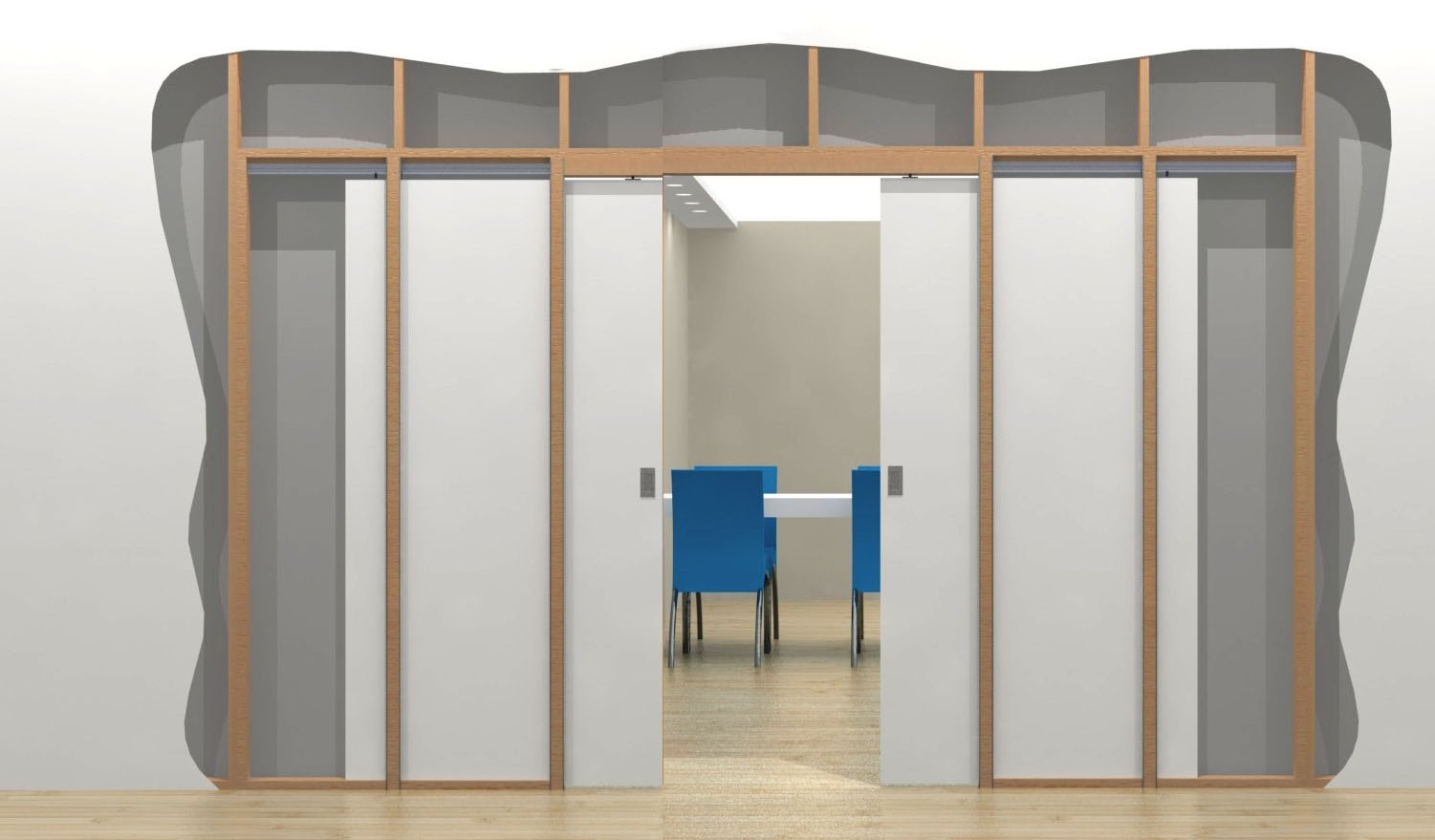 С установкой двери-пенала могут возникнуть большие сложности. Если стена с дверным проёмом выполнена из кирпича или монолитного бетонного блока — сделать карманы для створок самостоятельно будет практически невозможно, потребуется помощь специалистов. Со стеной из гипсокартона такое проделать гораздо проще: часть стены убирается, на это место устанавливается каркас для полотна и обшивается панелями обратно.