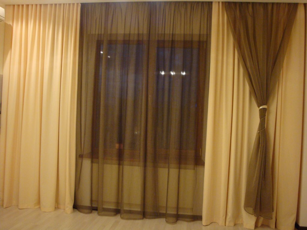Кремовый, персиковый и бежевый станут прекрасным дополнением, а в сочетании с тюлем темных тонов будут смотреться довольно стильно и аристократично.