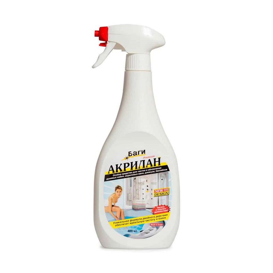 Очищающая пена отлично подходит для акриловых ванн, которые запрещено чистить щетками, металлическими губками, абразивными порошками. Пенистое средство оставляет акриловую поверхность абсолютно чистой и белой. Средство израильского производства продается в бутылочках по 1 л. Цена — в пределах 550-700 рублей.