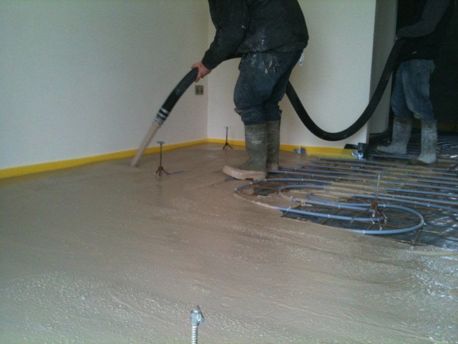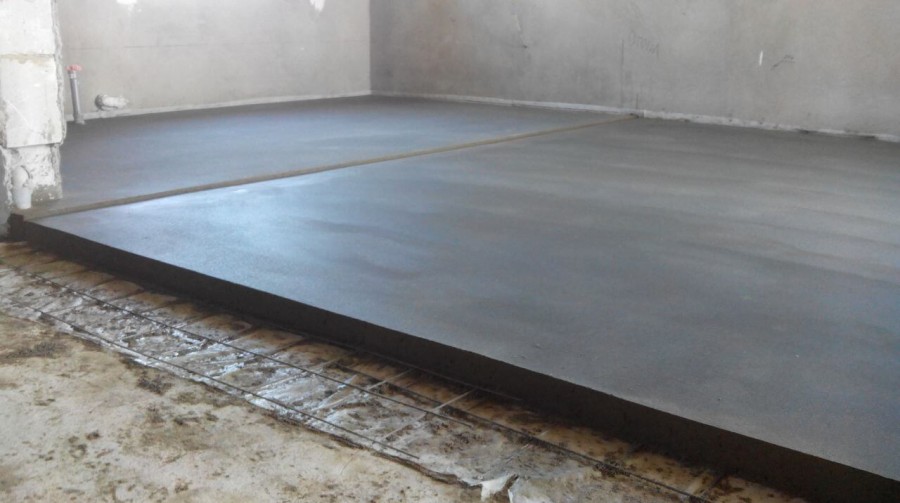 - в стяжку легко встроить обогрев (электрический или водяной), появляется возможность экономить на дополнительном отоплении помещения, а встраиваемое тепло распределяется равномерно по всей бетонной плите с большей отдачей;