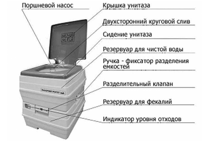 - емкость для сбора нечистот, устанавливаемая под стульчак и представлена пластмассовым контейнером или ведром;