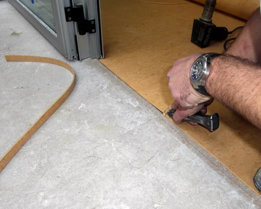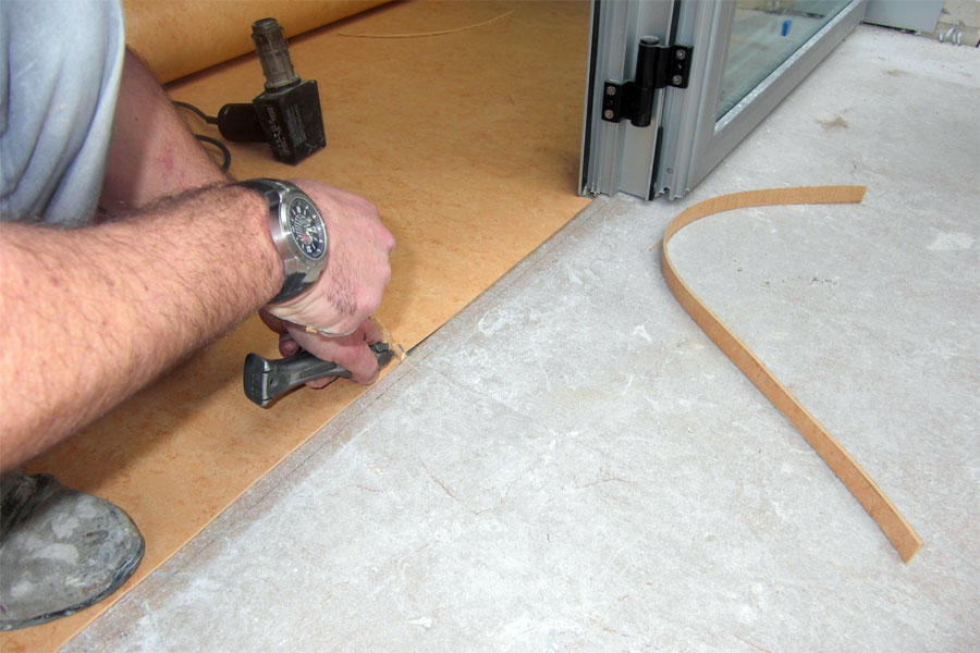 Если вы хотите выполнить подрезку двух кусков, чтобы не было видно стыка швов, вы можете применить метод холодной сварки линолеума: