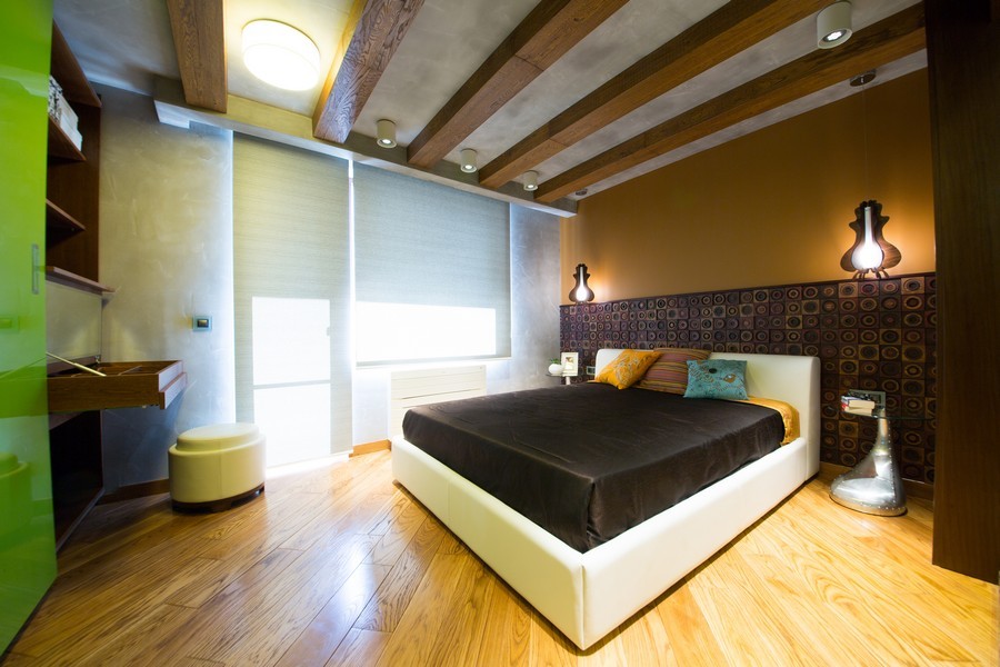 - Перпендикулярно лучам света – способ выгодно преобразит помещение, если комната узкая, с окном в конце. Визуально она будет казаться шире за счет поперечных линий.