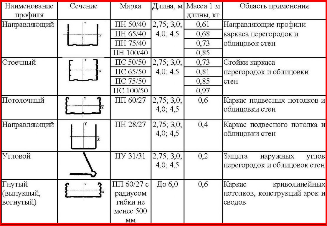 Кроме того, в классификации профилей для ГКЛ существуют разновидности: