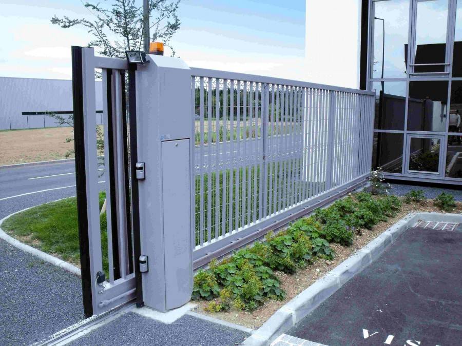 Откатные ворота — это современная разновидность въездных ворот. Их отличительной особенностью является то, что при открытии дверное полотнище не отпирается внутрь, а сдвигается в сторону с помощью электропривода. Это позволяет экономить свободное пространство, а сегодня такие ворота используются как при коммерческом, так и жилом строительстве. Откатные ворота могут отличаться по конструкции, а в большинстве случаев они выполняются следующим способом: