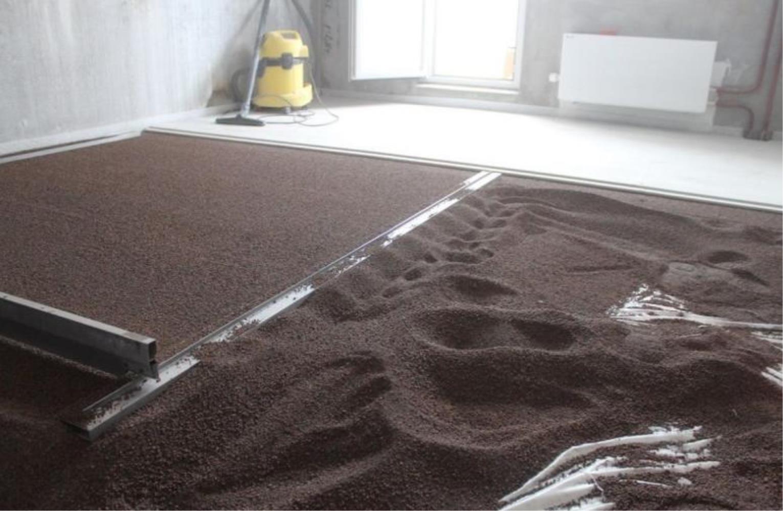 - подготовленную поверхность засыпают сухими смесями (керамзит, песок или перлит);