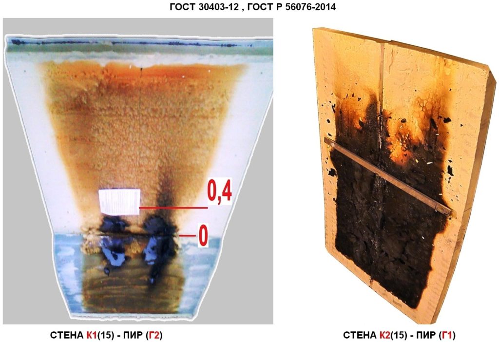 После изъятия образцов из камеры определяют неповрежденную часть, то есть процент общего объема, который не обуглился и не сгорел. Результаты округляются до 1 сантиметра. Такие дефекты, как обугливание, вспучивание, сколы, шероховатости, изменения цвета и коробление в расчеты не принимаются. Неповрежденную часть взвешивают на весах, точность которых должна быть не менее 1%. Все полученные результаты вносятся в отчетную документацию, включая фотоотчет. При определении несоответствия характеристик продукции к требованиям безопасности на объекте составляется доклад.