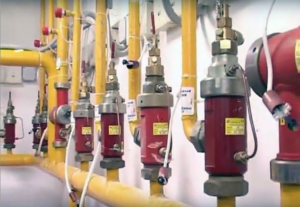 Принцип работы приборов следующий. Станция пожаротушения находится в режиме ожидания. Когда рабочее давление опускается ниже минимума, срабатывает датчик, передающий сигнал в блок автоматики. Происходит открытие задвижки пенообразователя, включаются насосы и перемещают вещество в пропорционер. В нем смешивается раствор, после чего он подается в систему растворопроводов и бак. Когда емкость наполнена, электрические задвижки закрываются.