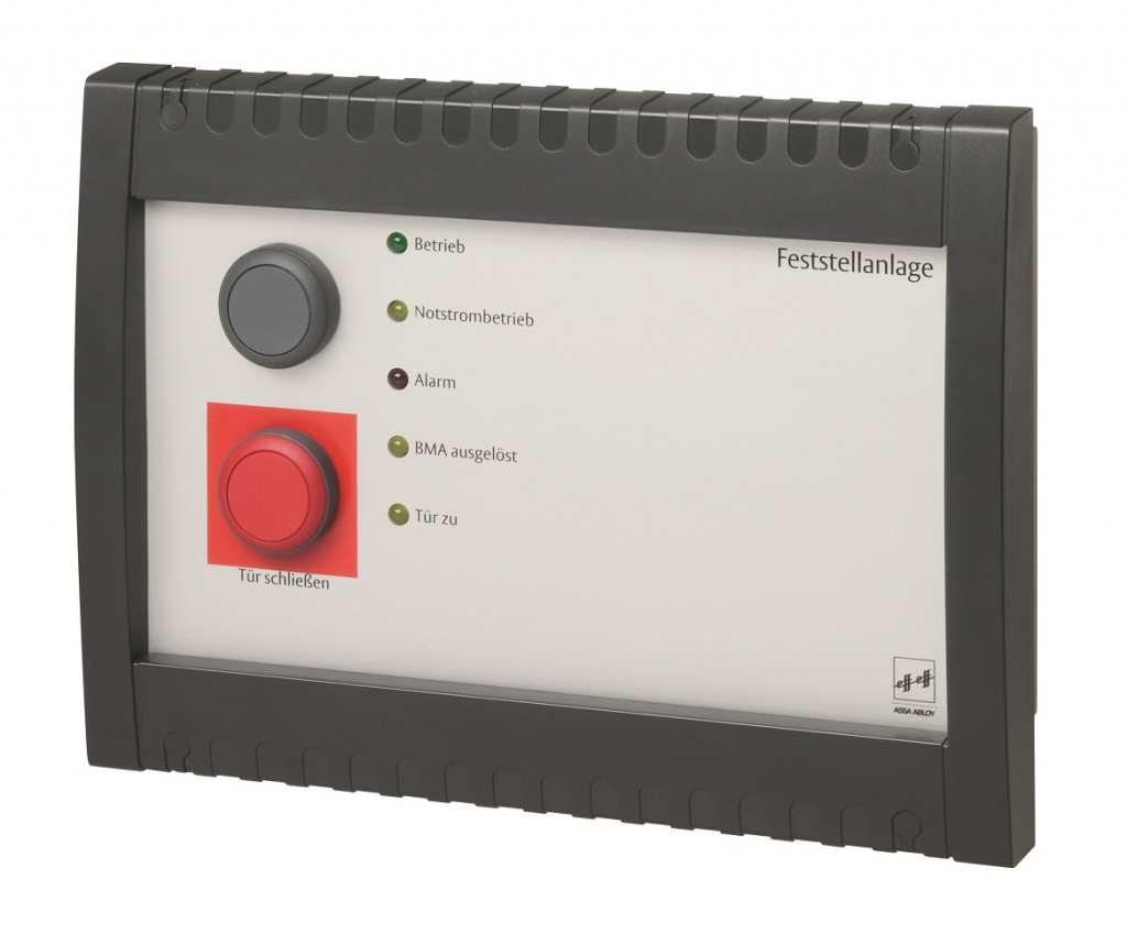Автомат включения дымозащиты служит в качестве центрального блока электропитания и обработки установки. Сюда поступают и здесь обрабатываются сигналы пожарных извещателей. В экстренном случае или при нажатии встроенного пускового выключателя автомат включения дымозащиты выключает электромагниты. Теперь двери могут надежно закрываться и защищать остальную часть здания.