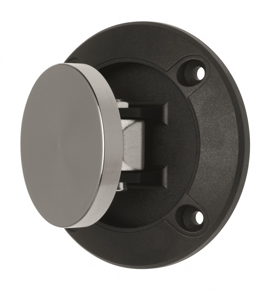 При боковом запирании двери защелка должна фиксироваться в ответной части. Этот элемент присутствует в комплекте и размещается он на неподвижной половине двери. Поэтому нельзя устанавливать встык две одинаковых системы. Они просто не смогут работать. Благодаря комплекту устройств с фиксацией «пол-потолок» створки нормально работают. В этом случае неподвижный элемент запирается в направлении «вверх-вниз», а защелке есть где зацепиться.