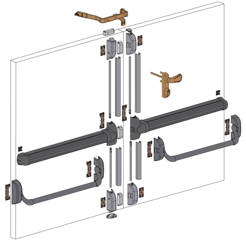 Монтажная схема сборки двустворчатой противопожарной двери с замком Антипаника