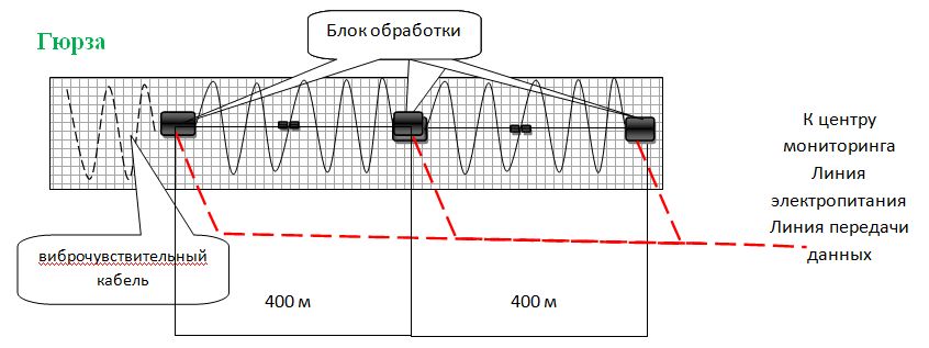 Представляют собой блоки обработки сигнала (приемный и передающий), к которым подключается чувствительный кабель, реагирующий на приближение к нему посторонних объектов. Возможно применение на неподготовленной пересеченной местности (приземная установка), а также для защиты полотна ограждающих конструкций (пролом) или их верхней части (перелаз).