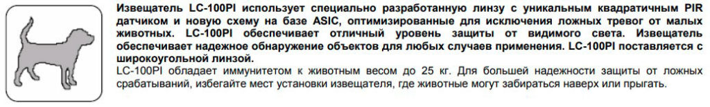 Также, если у Вас есть домашние питомцы, обязательно следует выбирать датчик с защитой от животных. При наличии такой опции, датчик реагирует на объекты весом не менее 20-30 кг (вес колеблется в зависимости от модели).