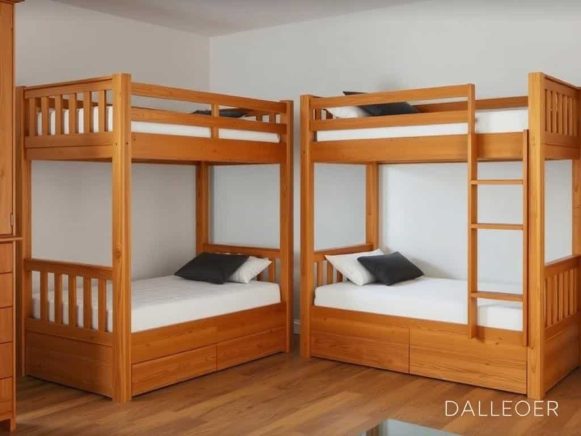 Плюсы двухъярусных конструкций из массива очевидны: прочность, эстетика, возможность реставрации и наличие натуральных свойств древесины, таких как регулирование влажности в помещении. К тому же дерево создаёт уют, который сложно получить от металла или ЛДСП.