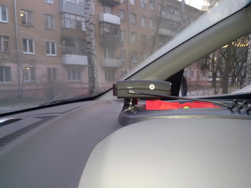 Фиксируется детектор на лобовом стекле при помощи специального крепления, снабженного парой присосок. Такой метод фиксации достаточно надежен, особенно если приклеивать присоски на влажное, очищенное и обезжиренное стекло.