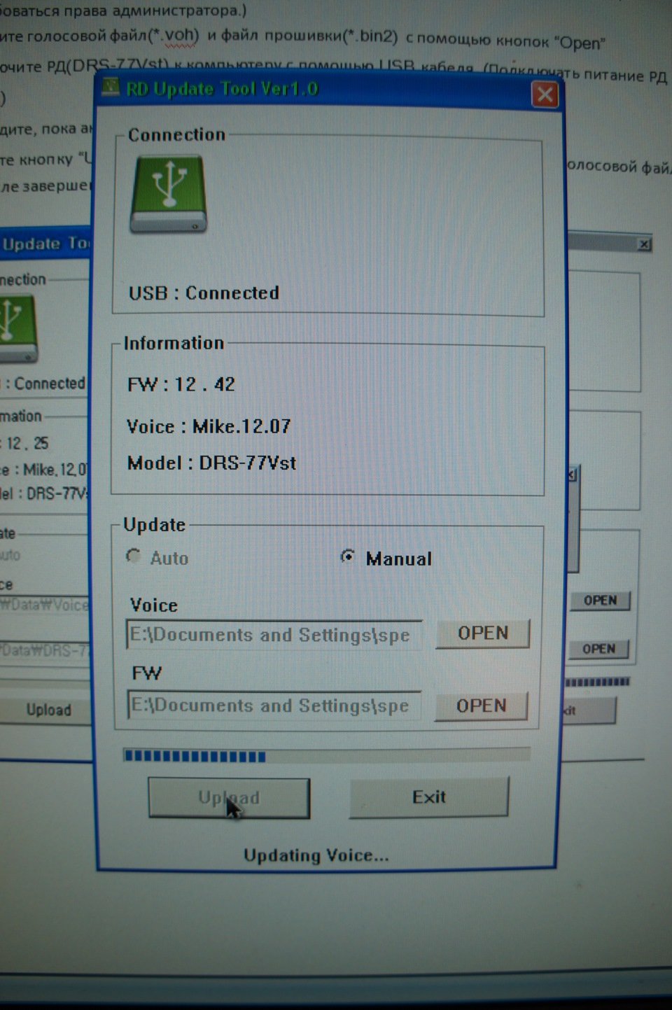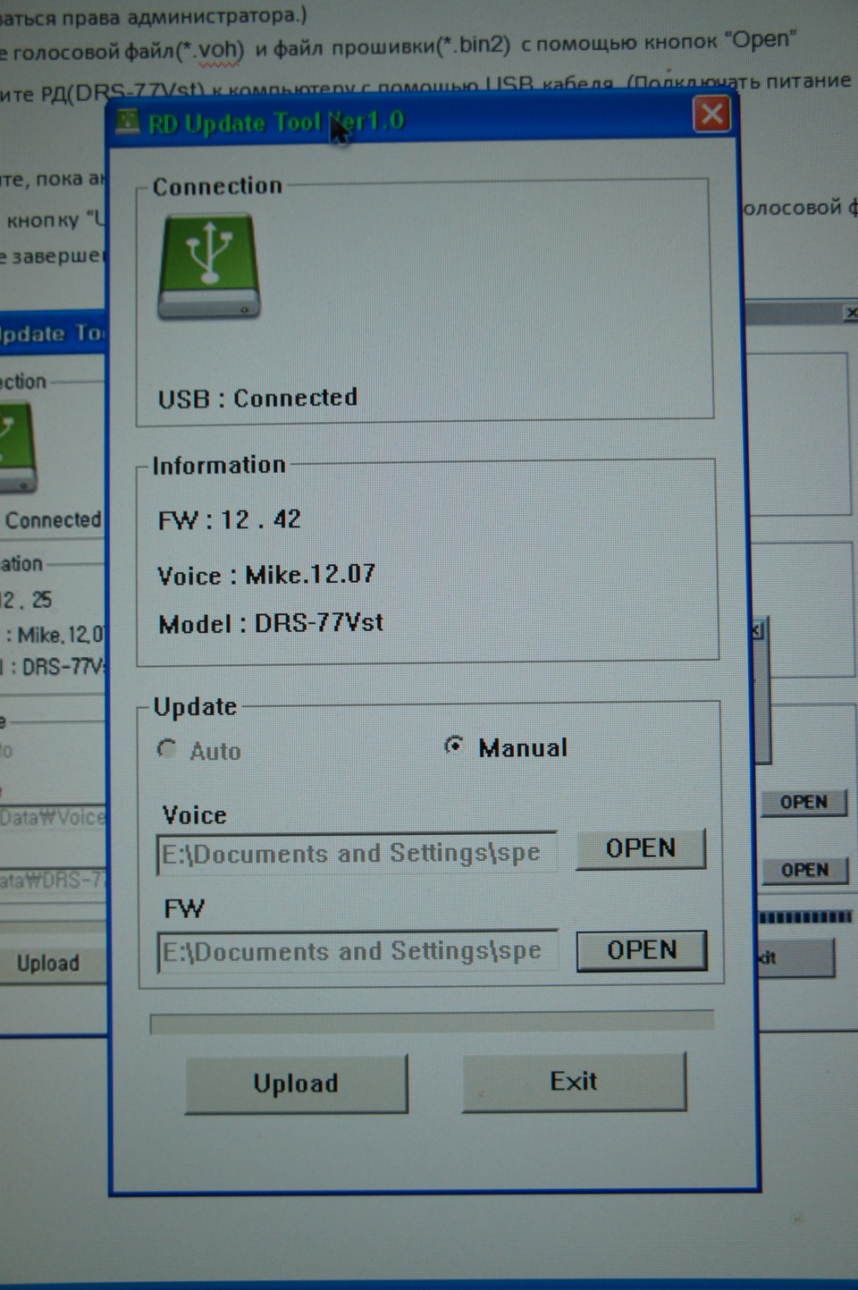 Продублирую здесь! — И кстати Василий. Может будет кому полезно! Я пробовал и разные кабели, и в разные порты USB вставлял кабель радара, но у меня радар никак не хотел перепрошиваться до тех пор пока я не вынул из USB порта клавиатуру. Может будет кому полезно!