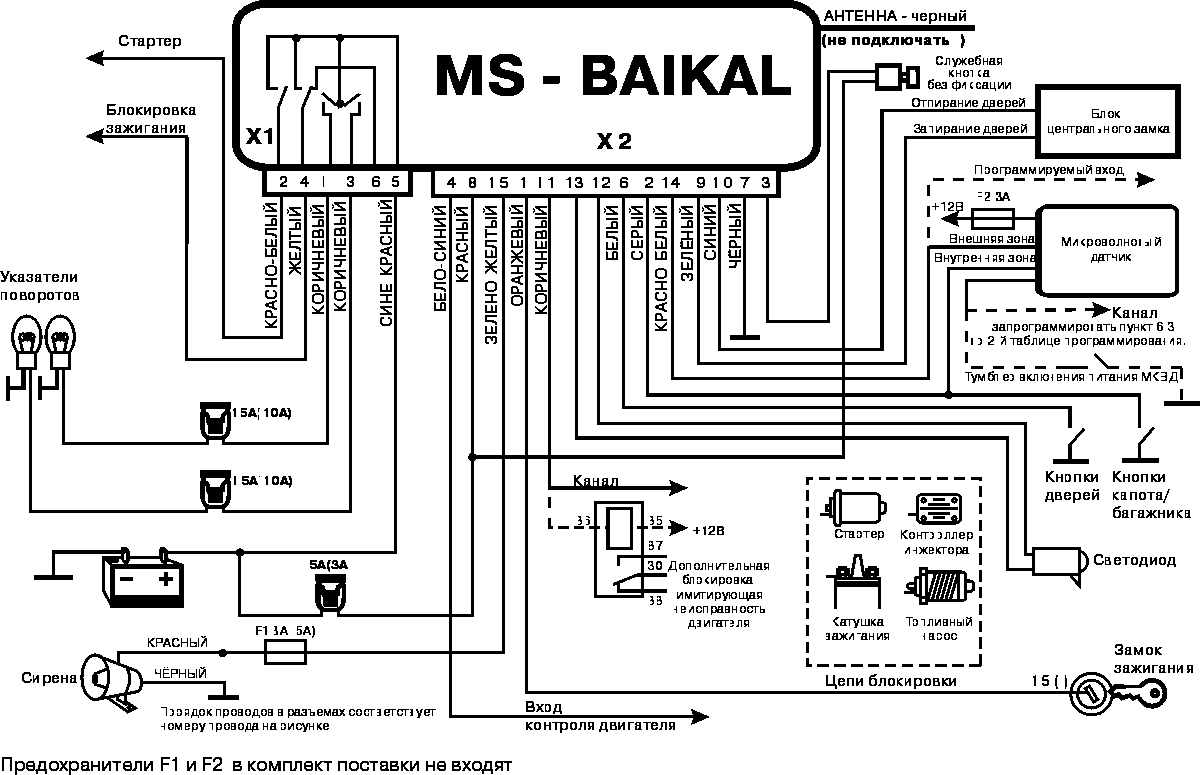 Сечение провода должно быть в пределах 0, мм2. К этому набору обычно добавляются несколько охранных функций: при несанкционированном доступе блокировка запуска двигателя, срабатывание звуковых и световых сигналов от проникновения в салон, подкапотное пространство и багажник несанкционированное отпирание и при механических воздействиях на поставленный под охрану автомобиль удар, раскачивание.