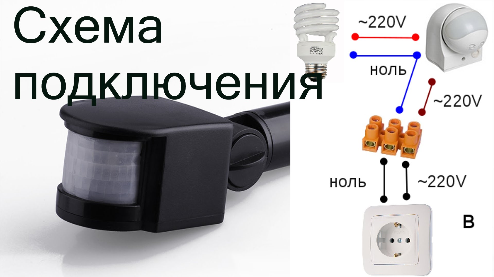 Подключение прибора аналогично монтажу одноклавишного выключателя света. То есть, вам нужно подвести питающую фазу к датчику, и через него пустить ее на светильник.