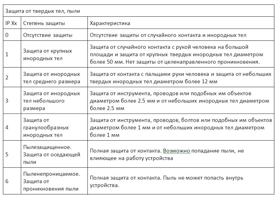 - защита от воды и пыли;
