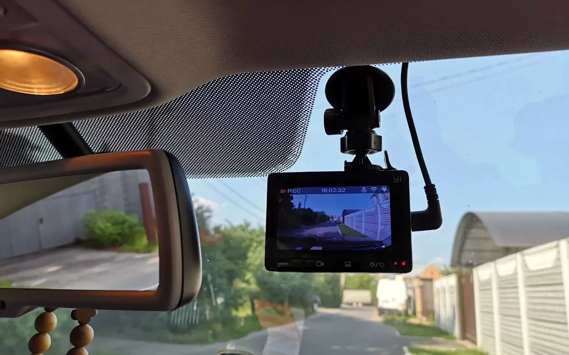 Видеорегистратор, закреплённый на лобовом стекле с помощью присоски