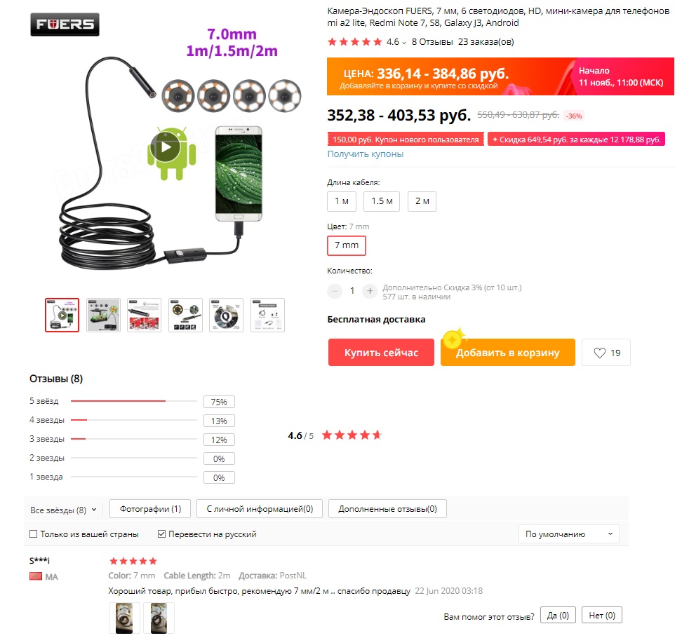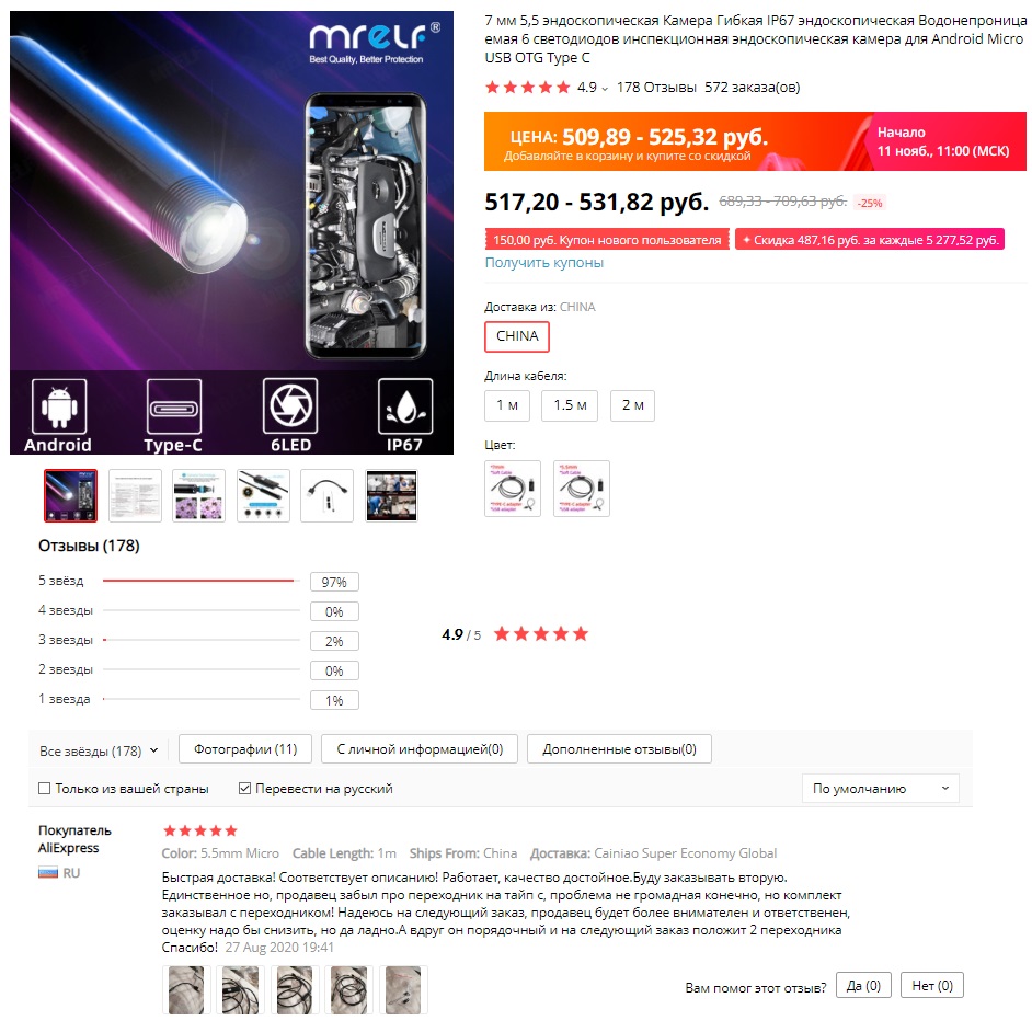 Камера эндоскоп для андроид на Алиэкспресс. Это миниатюрное оборудование для домашних целей.