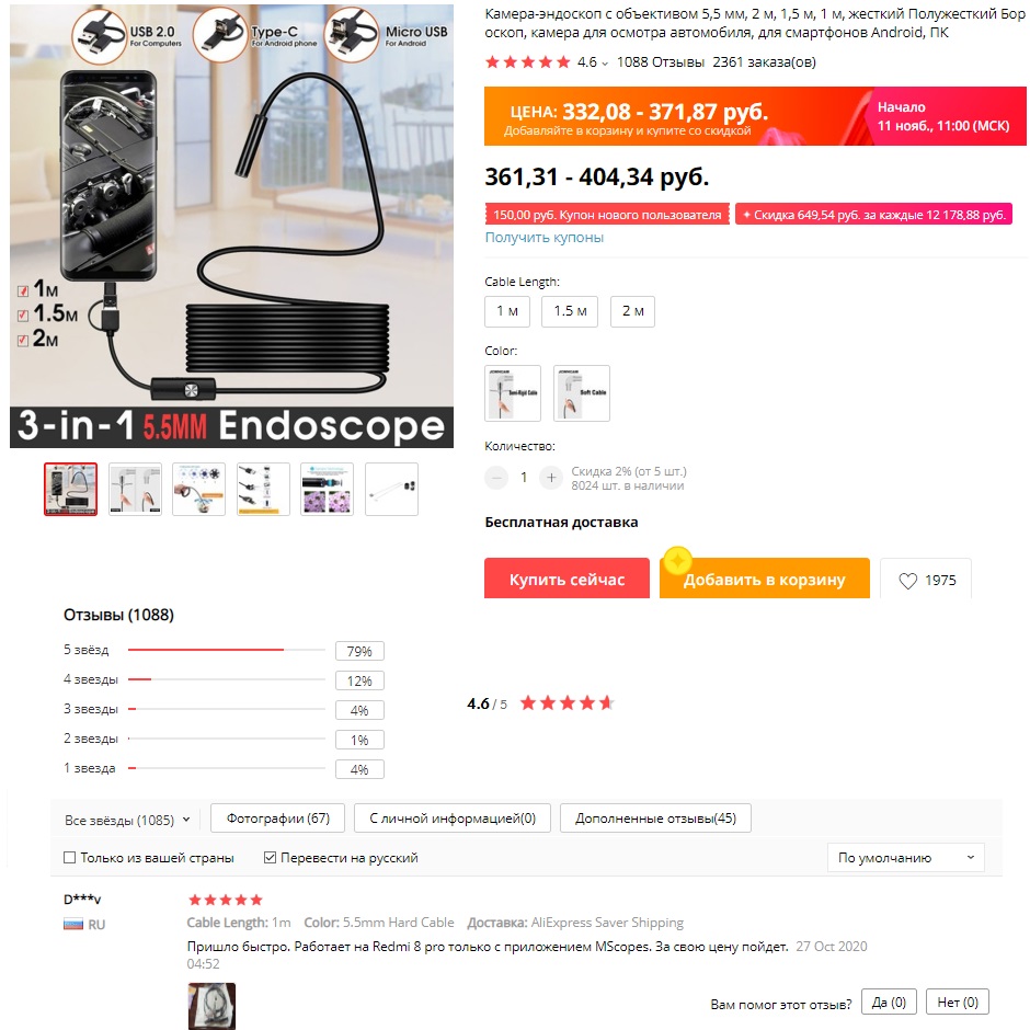 Лучшие ТОР 10 эндоскопов на AliExpress