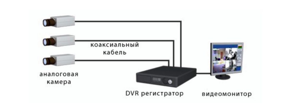 В данном случае изделие по коаксиальным кабелям подключается к аналоговым приборам наблюдения. Кодирование и обработка изображения выполняется непосредственно в видеорегистраторе. Как правило, устанавливается на небольших или средних объектах.