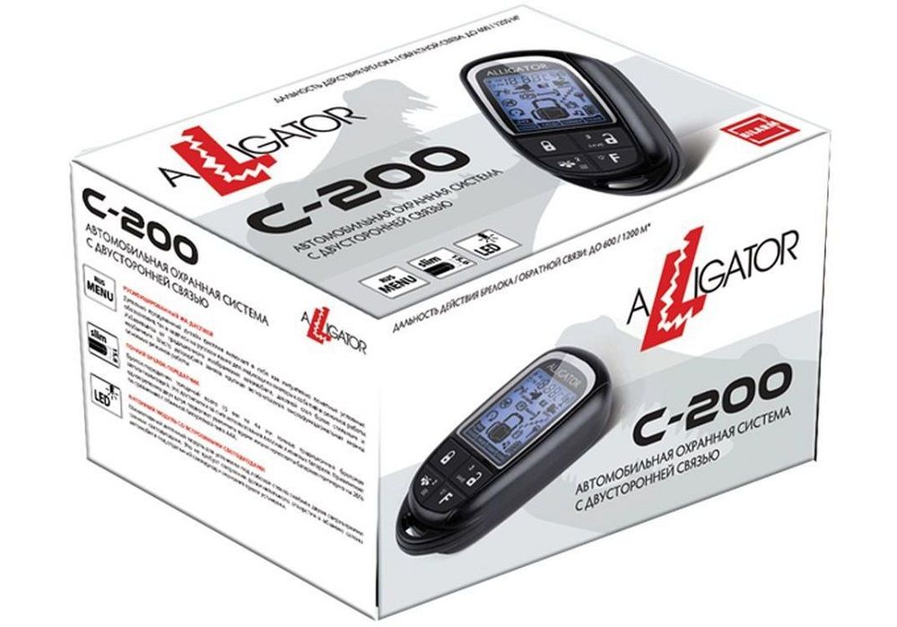 Устройство ведёт себя незаметно в режиме ожидания сигнала, ничем себя не компрометируя. Активация функции ложного вызова уменьшит количество неправильных срабатываний, оберегая нервы и время автовладельца. Брелок, с помощью которого осуществляется управление сигнализацией, полностью русифицирован, радиус действия Alligator C-200 по паспорту – 1200 метров (в условиях плотной городской застройки это значение можно смело разделить пополам).