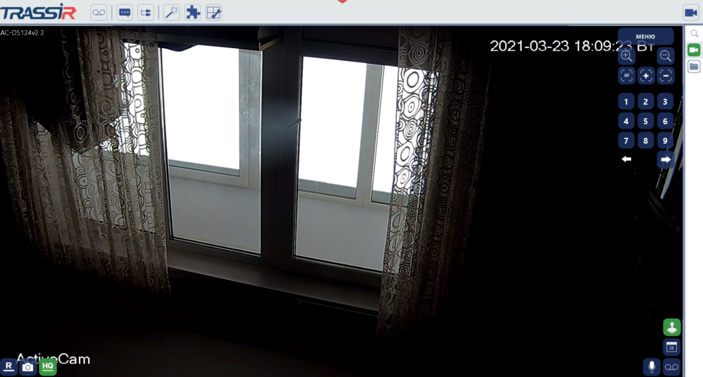 Так как эта управляемая PTZ камера, трассир при просмотре дает возможность управлять камерой.