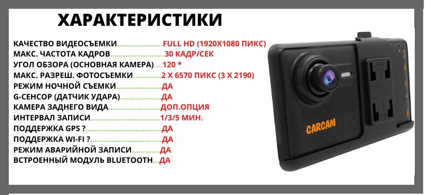 На боковых частях доступно больше информации о параметрах видеорегистратора и его производителе.